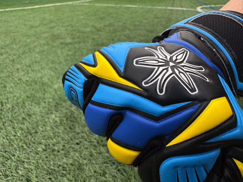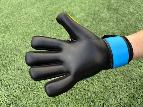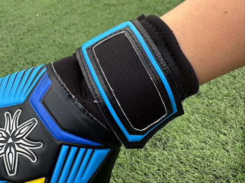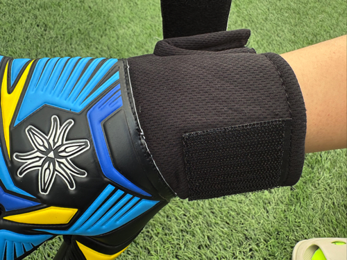 こちらのモデルはスリットが入っており、手が入れにくいキーパーグローブとは違い、スムーズに脱着ができる。