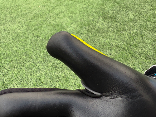 親指もネガティブカットであり、細身でキャッチングしやすい。