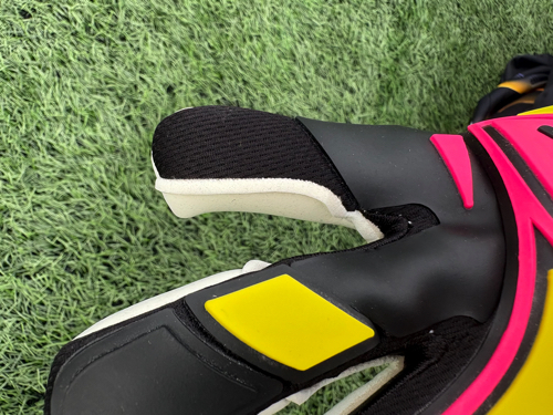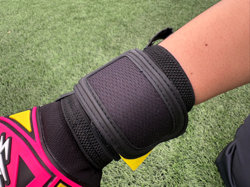 そしてTタブもついており、キーパーグローブの脱着時にはマジックテープを触らずに脱着することで、パームの破れを最小限にすることができる