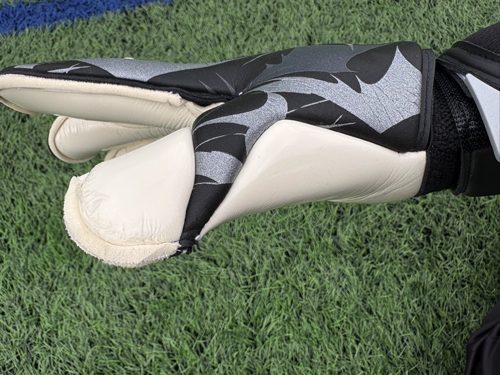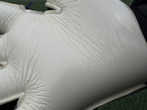 今回はエンボスラテックスを使い、全体的に厚みがある安心感のあるキーパーグローブに仕上がっている。