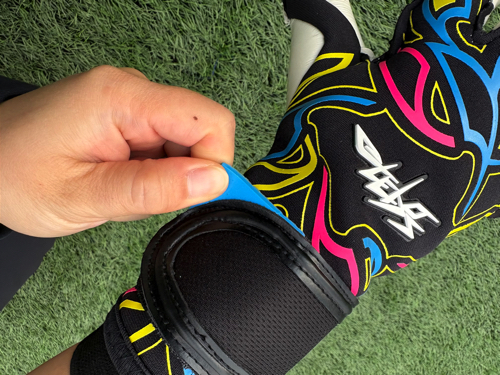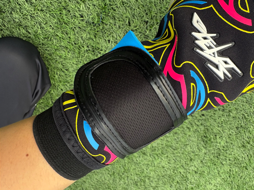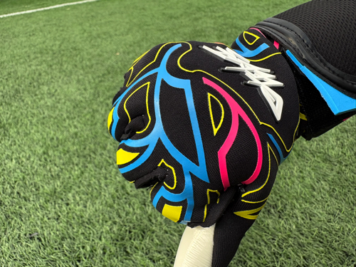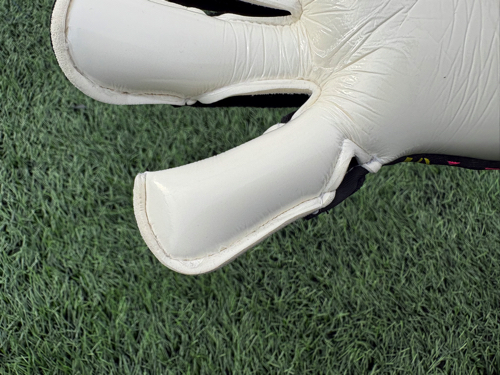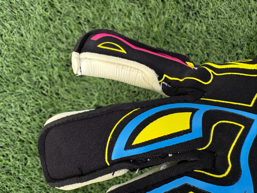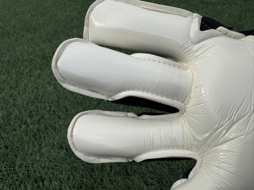 バックハンド側途中までパームがあるため、球体であるボールをキーパーグローブの縫い目でキャッチングすることはない。