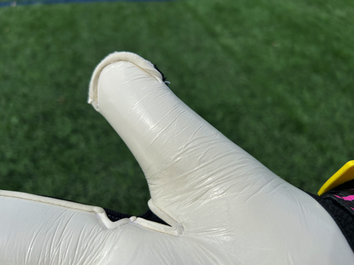 指先・付け根と両方より親指を包み込んでおり、非常にフィットする。