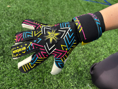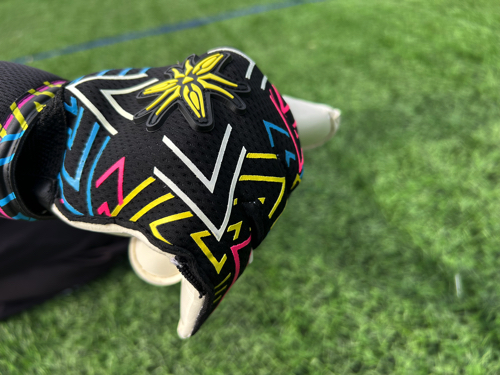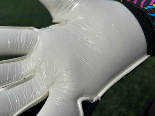 デザインで目を引くこちらのキーパーグローブのスペックを侮ってはいけない。
